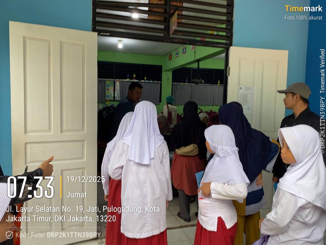 Jumat, 19 Desember 2025, suasana SDN Jati 07 tampak berbeda dari hari-hari biasanya. Menjelang libur dua pekan semester ganjil Tahun Pelajaran 2025/2026, kegiatan distribusi Makan Bergizi Gratis (MBG) dilaksanakan secara khusus dengan sistem dirapel, yakni seluruh alokasi MBG dibagikan sekaligus pada hari ini.