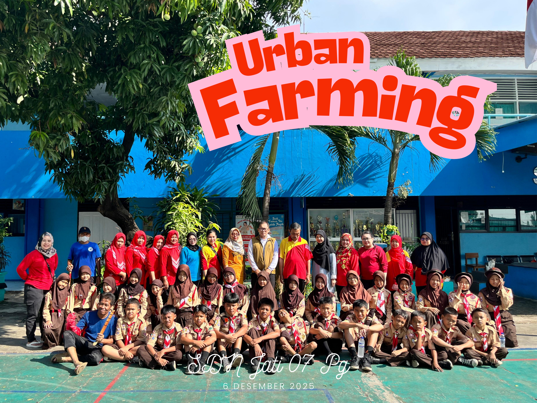 SDN Jati 07 kembali melaksanakan kegiatan Urban Farming sebagai bagian dari program sekolah peduli lingkungan. Kegiatan yang berlangsung pada Sabtu, 6 Desember 2025 ini melibatkan seluruh guru, tenaga kependidikan, serta 30 murid dari kelas 4, 5, dan 6. Suasana sekolah tampak semarak dengan antusiasme para peserta yang begitu tinggi dalam merawat dan menanam berbagai jenis tanaman.