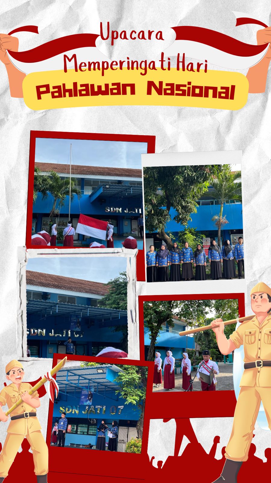 Senin, 10 November 2025, SDN Jati 07 Pagi melaksanakan upacara bendera dalam rangka memperingati Hari Pahlawan Nasional. Kegiatan berlangsung dengan khidmat di halaman sekolah, diikuti oleh seluruh guru dan peserta didik.
