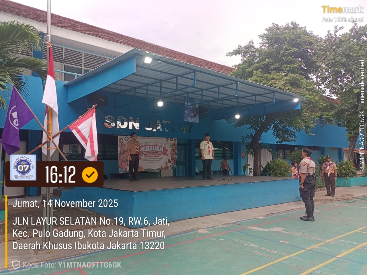 Kegiatan Perkemahan Jumat–Sabtu (Perjusa) Gugus Depan SDN Jati 07 resmi dibuka pada Jumat, 14 November 2025, bertempat di lapangan sekolah yang berlokasi di Jln. Layur Selatan No. 19, Jati, Pulo Gadung, Jakarta Timur. Seluruh peserta didik—baik putra maupun putri—mengikuti kegiatan pembukaan dengan penuh semangat dan tertib.