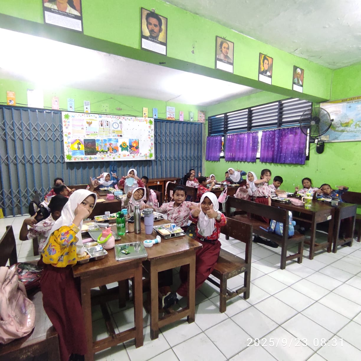 Suasana kelas 2B SDN Jati 07 pagi ini terasa begitu ceria dan penuh semangat. Tepat pukul 08.30, para siswa tampak duduk rapi di bangku masing-masing, menunggu momen yang mereka nantikan: Makan Bersama Gizi (MBG). Program MBG hari ini terasa istimewa karena menu yang disajikan adalah roti sandwich lezat dan bergizi yang disiapkan dengan penuh perhatian.
