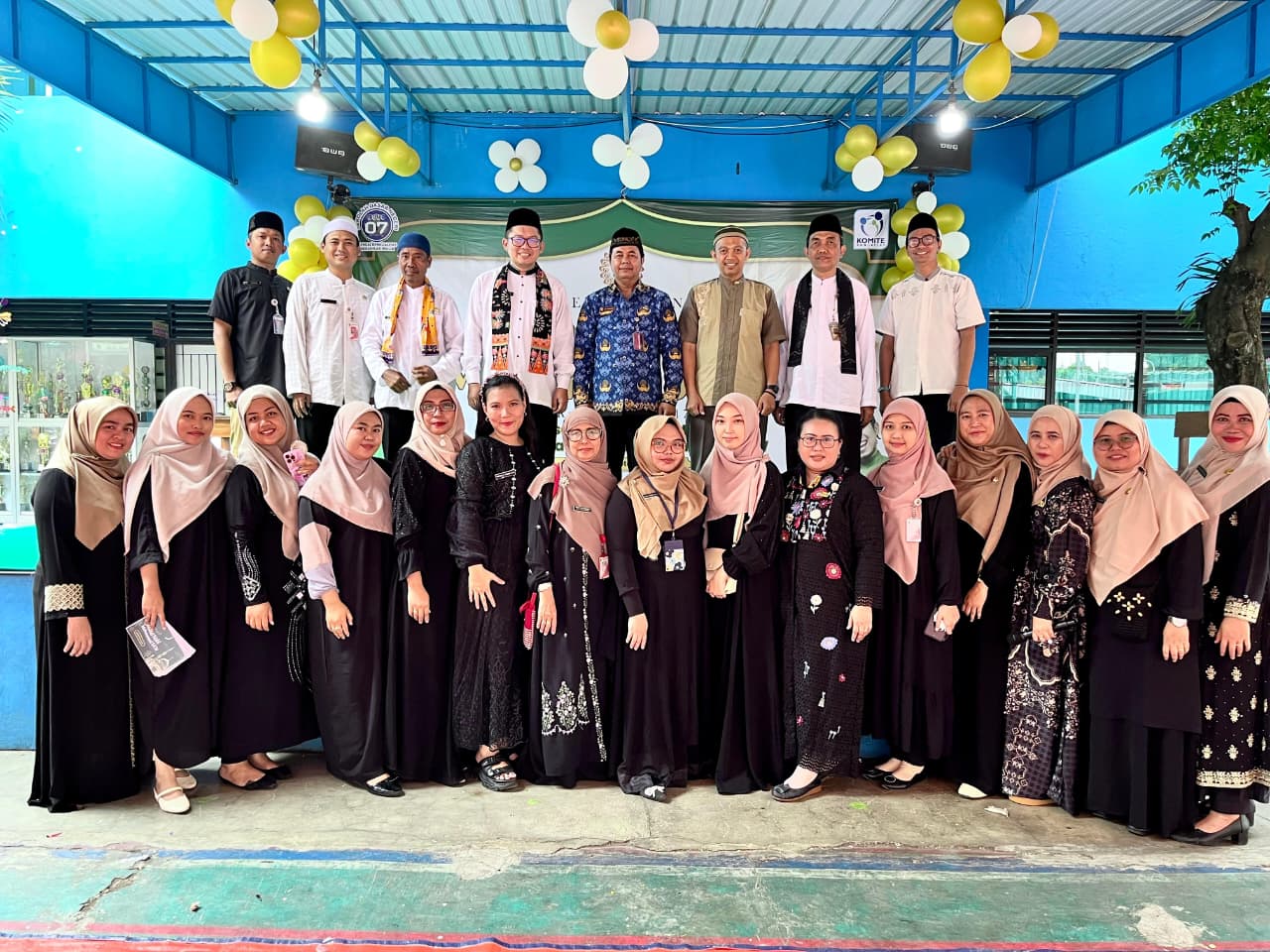 Acara dimulai dengan pembukaan yang dipandu oleh guru-guru dengan penuh semangat. Seluruh siswa tampak rapi dengan busana muslim, sementara guru dan tenaga kependidikan mengenakan pakaian seragam hitam dan pashmina krem yang menambah kesan khidmat dan kompak.