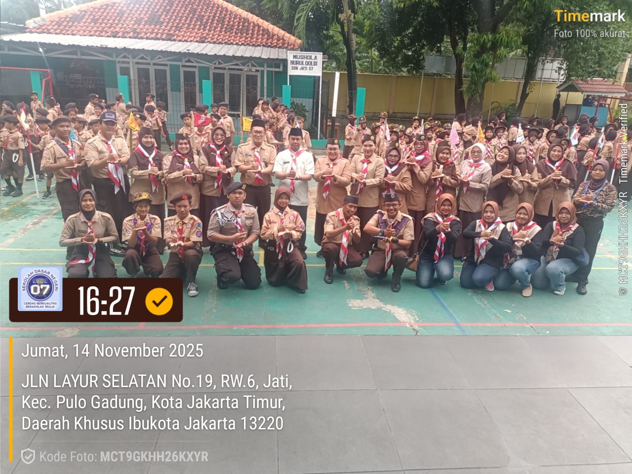 Kegiatan Perkemahan Jumat–Sabtu (Perjusa) Gugus Depan SDN Jati 07 resmi dibuka pada Jumat, 14 November 2025, bertempat di lapangan sekolah yang berlokasi di Jln. Layur Selatan No. 19, Jati, Pulo Gadung, Jakarta Timur. Seluruh peserta didik—baik putra maupun putri—mengikuti kegiatan pembukaan dengan penuh semangat dan tertib.